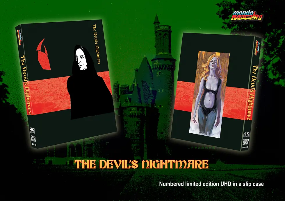 2 disc UHD/BD combo; exclusive slipcover with original ad art; 24 page full color booklet with text by Pete Tombs; 4 double sided full color art cards reproducing Italian fotobusta posters; 2000 numbered copies